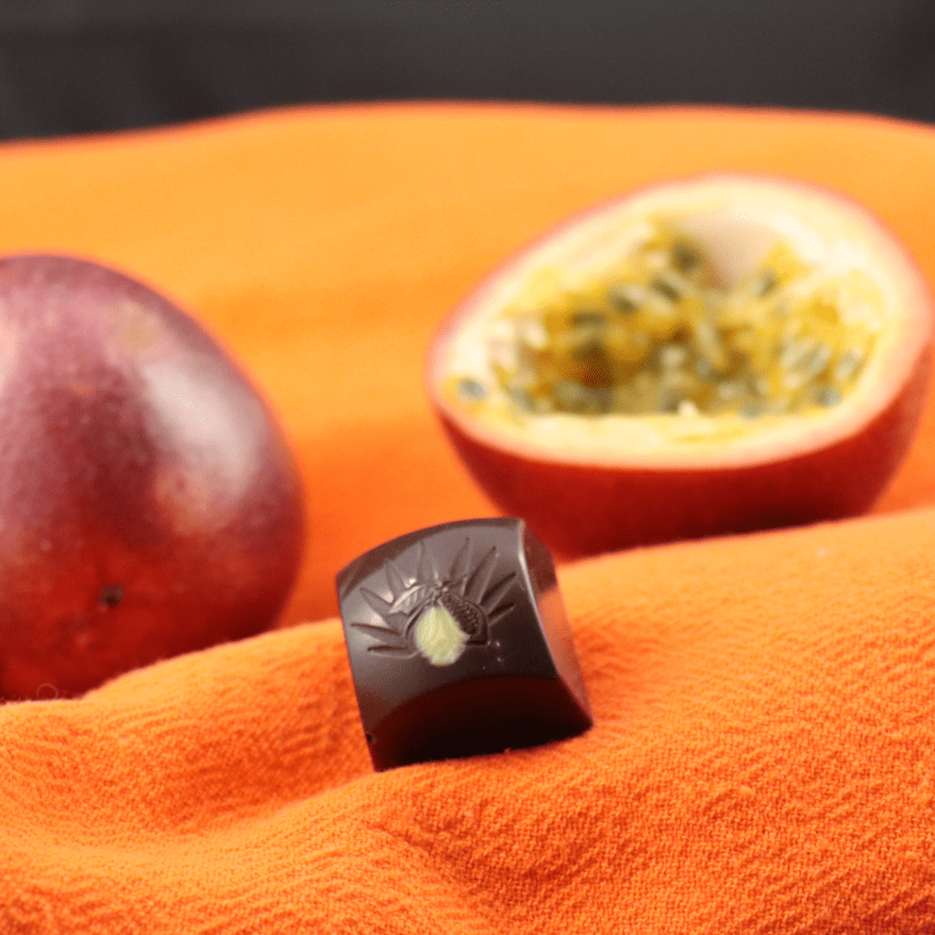 Le parfum intense et l’acidité du fruit de la passion sont soigneusement travaillés et transformés en une savoureuse ganache aromatisée, et enrobée d’une fine coque de chocolat, ce qui laisse la place pour que les saveurs exotiques s’expriment pleinement.